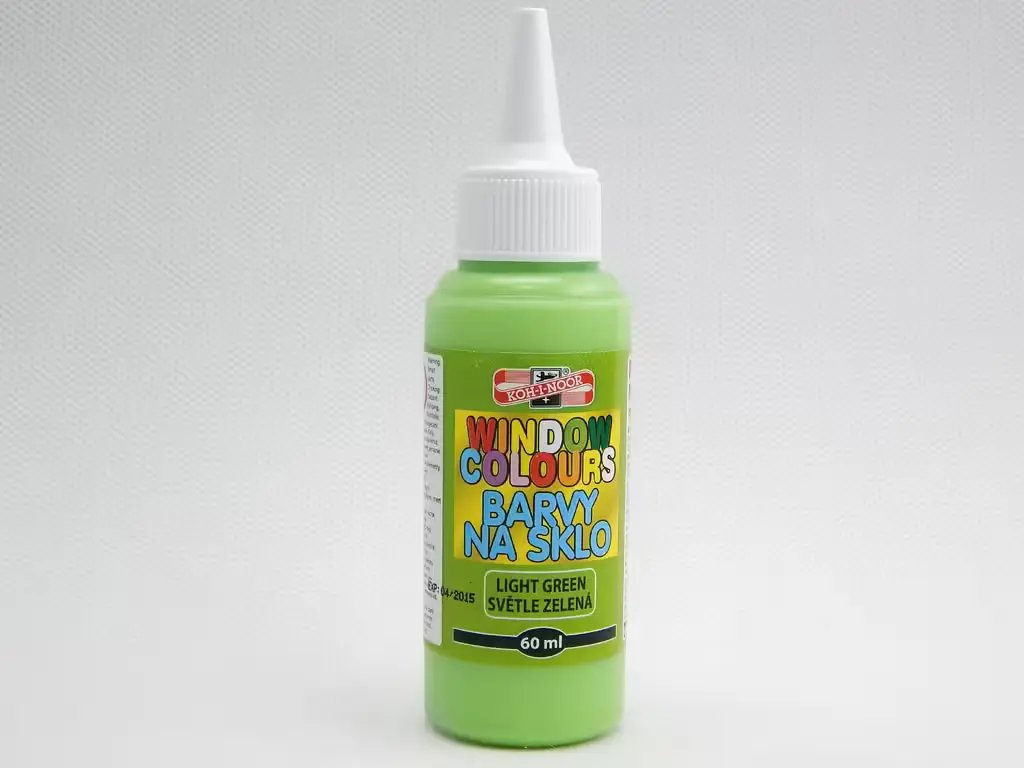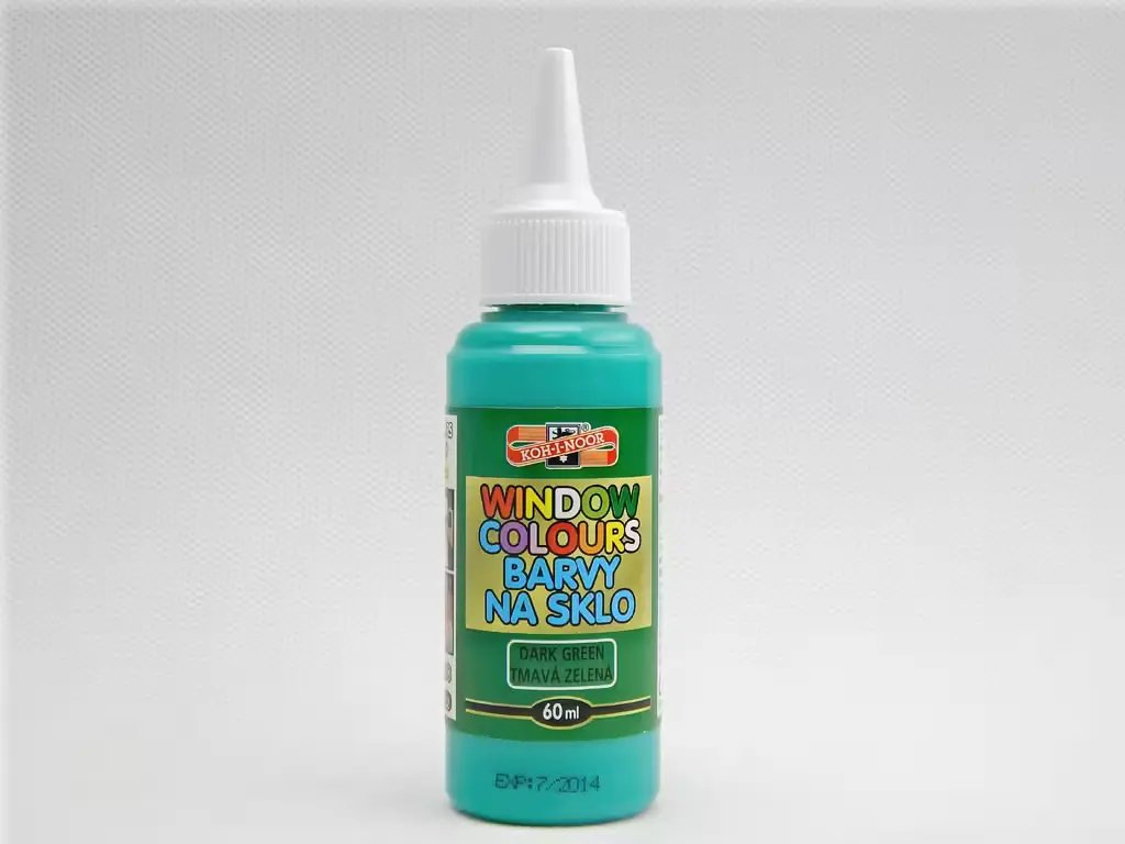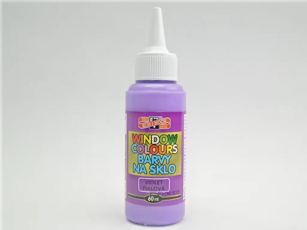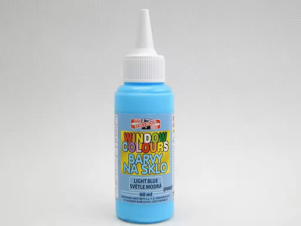 Barvy a kontury na sklo v 60 ml, průhledné lahvičce. Barva na sklo se používá k malování na sklo, zrcadlo, sklenice a dlaždice. Nejprve se barva nanese přímo z lahvičky na fólii. Po zaschnutí se obrázek z fólie opatrně odloupne a nalepí na požadovaný povrch. Určeno pro děti starší 3 let.Produkt lze zakoupit v různých variantách: