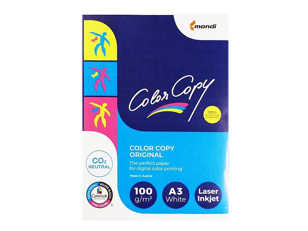 COLOR COPY Original je speciální bílý satinovaný papír poskytující uživateli dokonalou kvalitu při tisku v laserových zařízeních. Jde o speciální oboustranně upravený papír určený především pro tisk všech reprezentativních materiálů - například katalogů, kalendářů či vizitek atd. Brilantní barvy a ostrost Vás nenechají na pochybách. Papír je dostupný v gramážích 80 - 400 g ve formátech A4, A3, A3+ a SRA3.