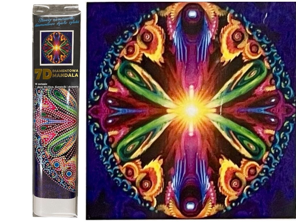 Diamantové malování 7D.Jedná se o 7D diamantovou mozaiku, při které se na rozdíl od 5D vyplňuje jen část obrázku, aby vyplněný obrázek působil dojmem, že vstupuje do prostoru.