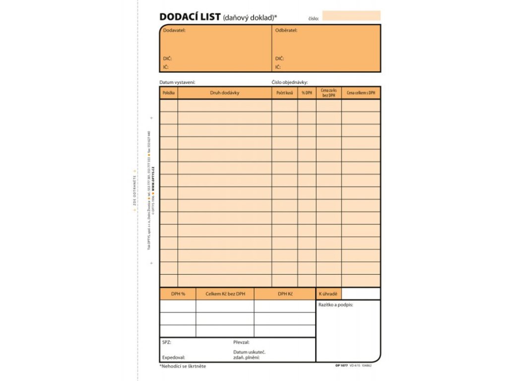 Dodací list - daňový dokladtiskopis splňuje všechny platné požadavky zákona o DPH