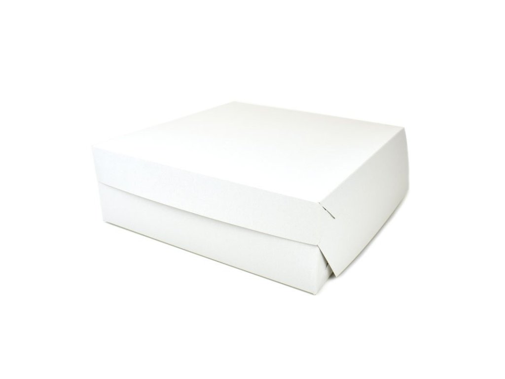 Dortová krabice – bílá (350 × 350 × 100 mm)Kvalitní dortová krabice z materiálu GD2 – bílo-šedá skládačková lepenka je ideální pro bezpečné balení a transport dortů, koláčů i jiných cukrářských výrobků.