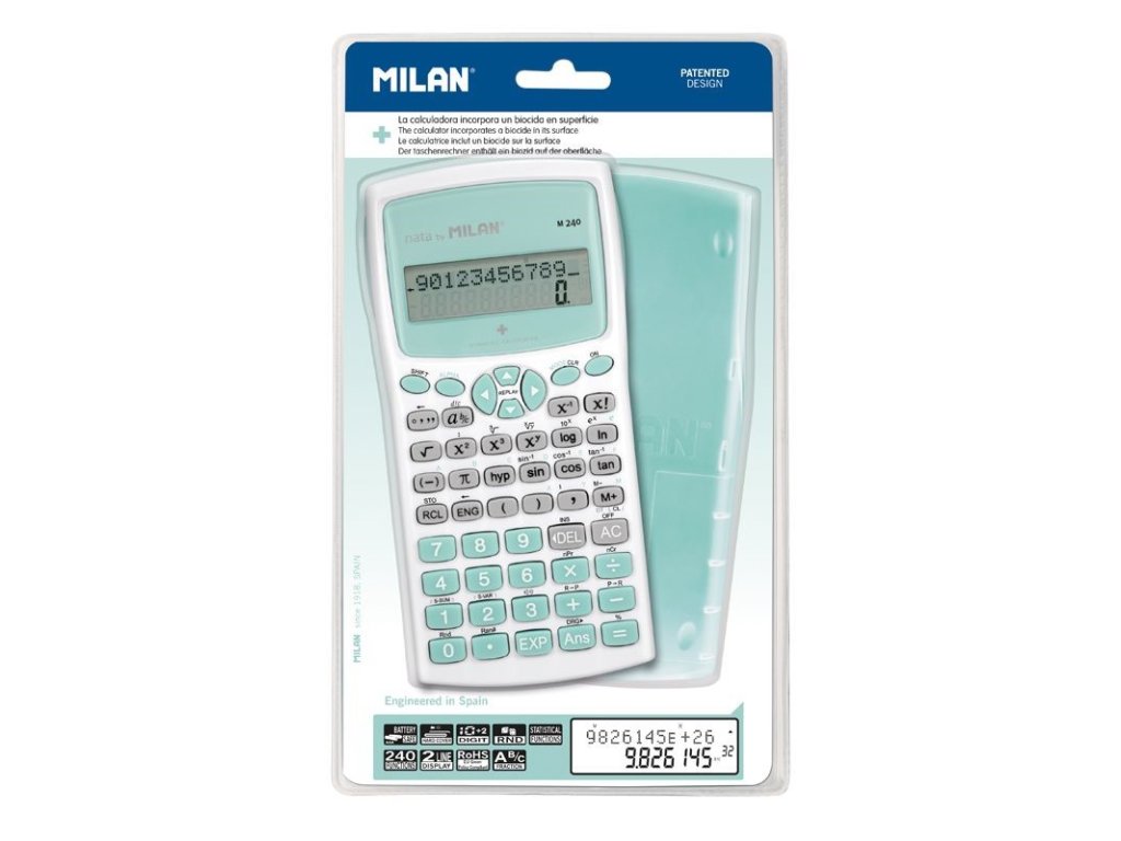 Kalkulačka Milan M240 vědecká 10 + 2místná tyrkysová Antibacterial