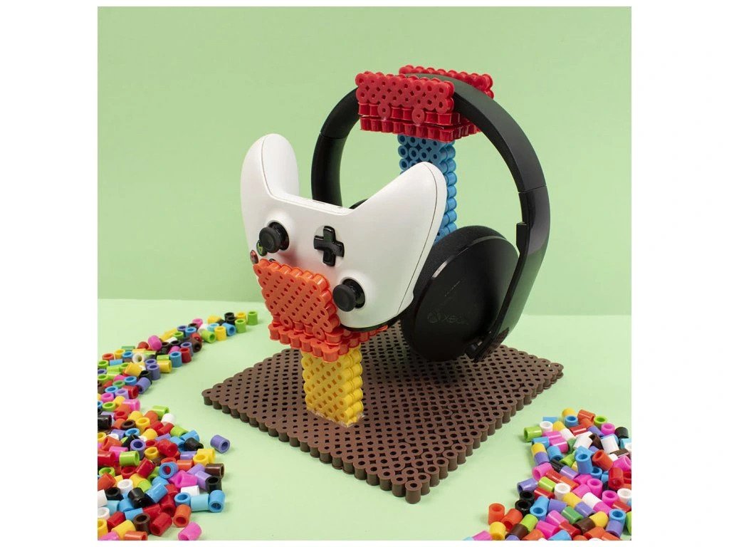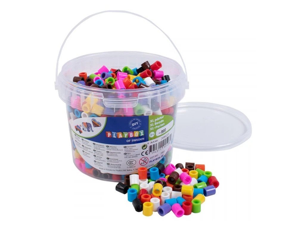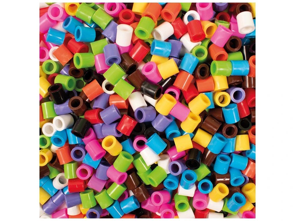 K sestavení obrázků z korálků používejte podložky pro korálky, na které buď podle šablon nebo podle vlastní fantazie vytváříte nejrůznější motivy. Poté na vyskládaný obrázek položte běžný pečící papír a zažehlete žehličkou ohřátou na nejvyšší stupeň. Nechte korálky vychladnout, obrázek sejměte z podložky a máte hotovo! Vhodné pro děti na podporu jemné motoriky. Korálky nemusíte jen zažehlovat, můžete je používat jako normální korálky a navlékat je na provázek.Balení obsahuje cca 900 ks zažehlovacích korálků XL v praktickém kbelíku, výška korálků je 10 mm, O 9 mm s O průvleku 5 mm v barvách - bílá, žlutá, oranžová, červená, fialová, růžová, modrá, zelená, hnědá, černá.