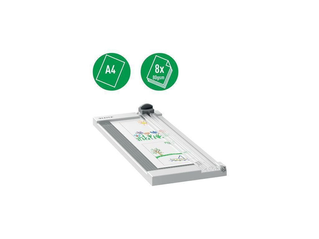 Lehký a kompaktní ořezávač papíru A4 ideální pro domácí, řemeslné a hobby použitíBezpečně uzavřený pevný nůž snadno rozřeže až 8 listů papíru o gramáži 80 g/m2
