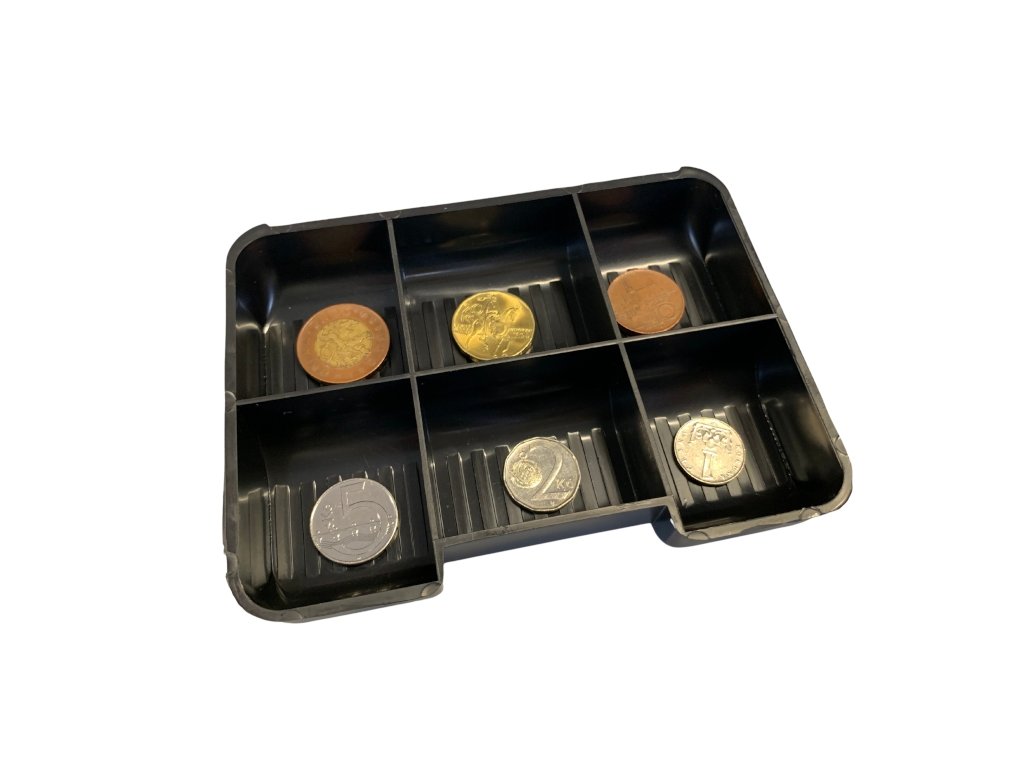 Kovová pokladna vyrobená z ocelového plechu. Obsahuje přihrádku na mince a volný prostor pro bankovky či dokumenty. Uzamykatelná a přenosná. O rozměru 150 x 110 x 80 mm.Doplňkové parametry