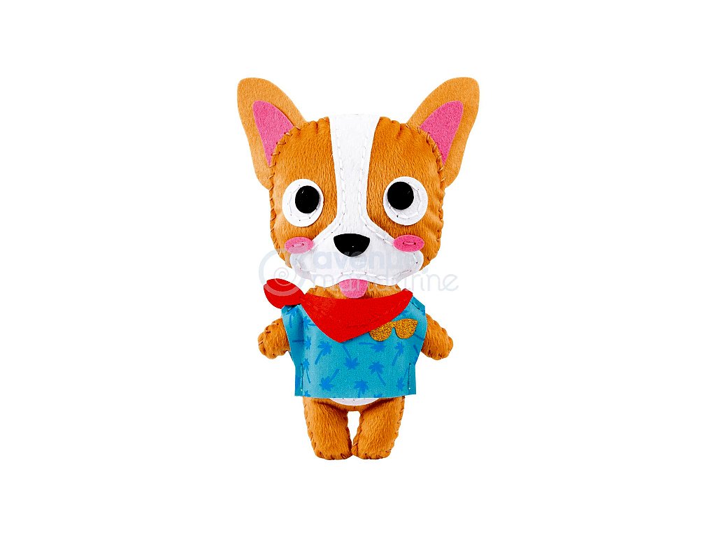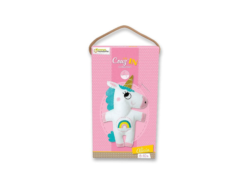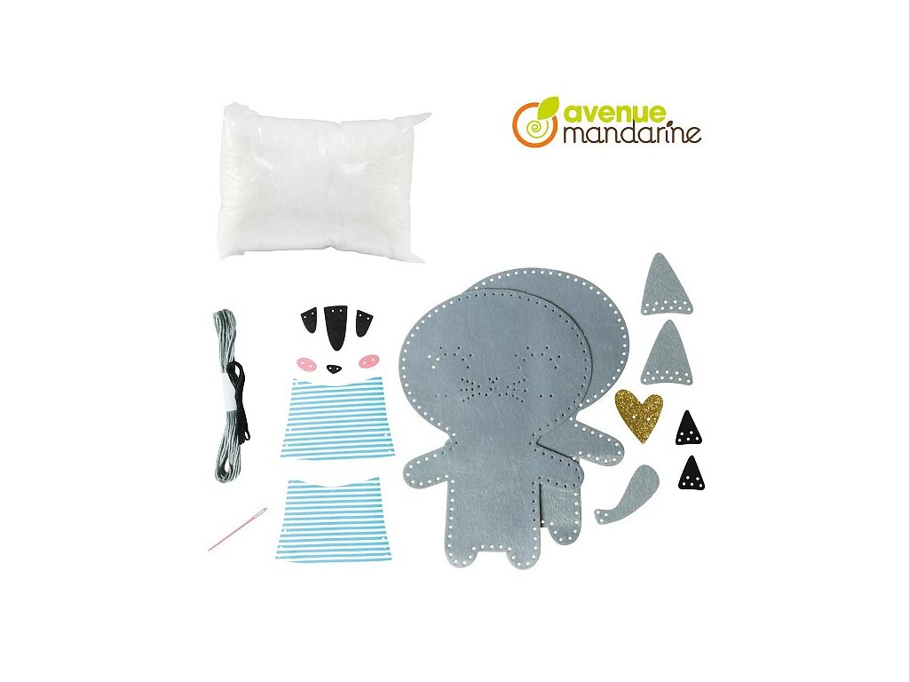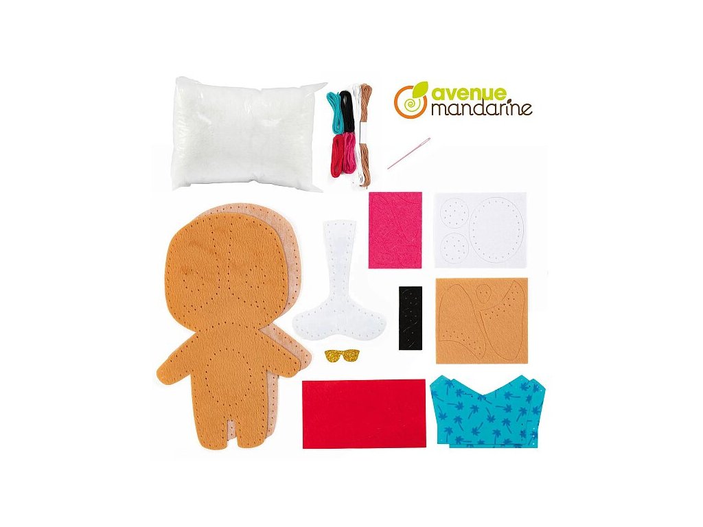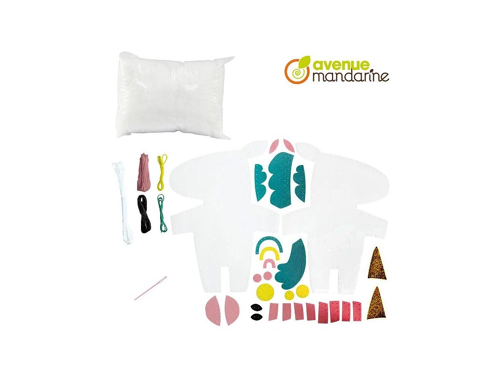 Kreativní sada Avenue Mandarine Dětské šití z kolekce Couz'IN, která umožňuje dětem objevení světa šití. Předem nastříhané kusy měkké barevné plsti s malými otvory usnadňují dětem použití jehly.Sada obsahuje: