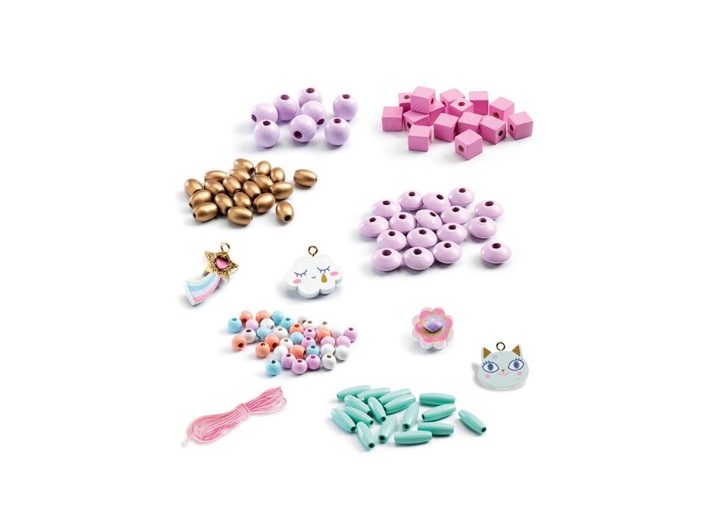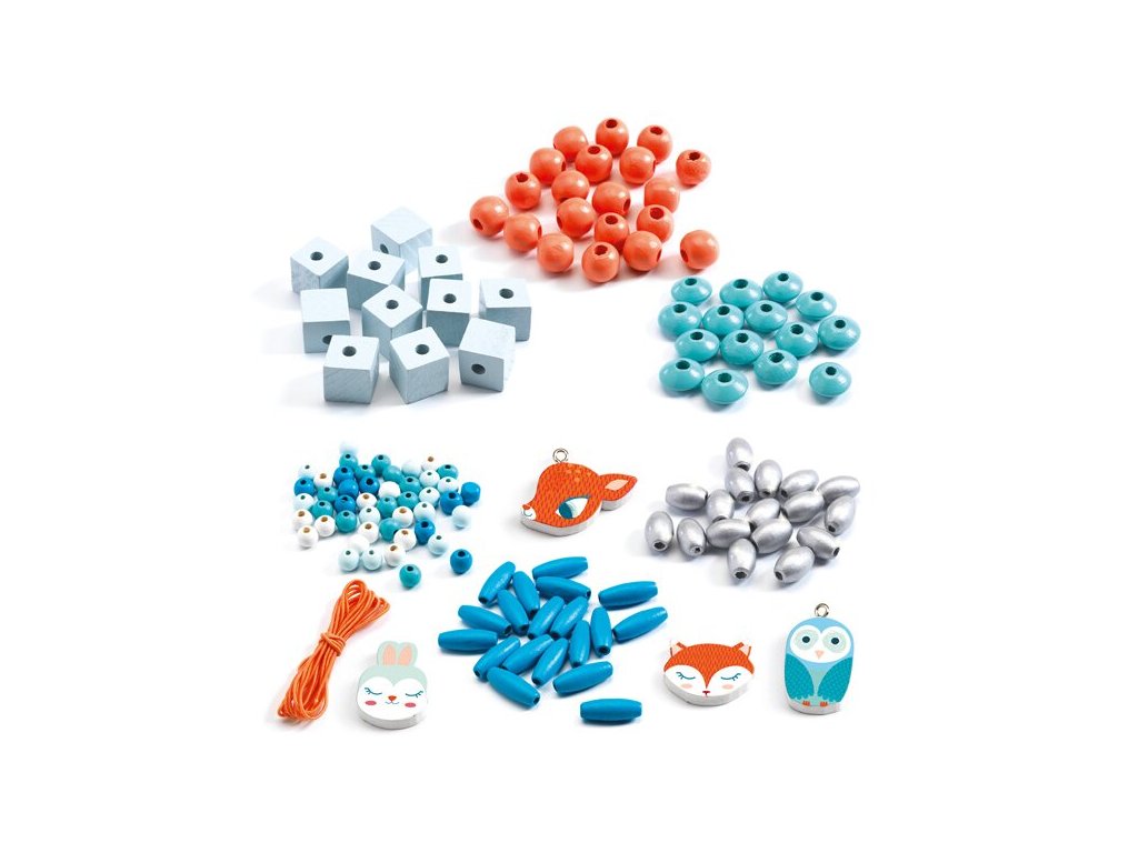 Kreativní sada 450 ks různých druhů dřevěných korálků a přívěsků, ze kterých je snadné navlékat originální šperky.Vhodné od 6 let.