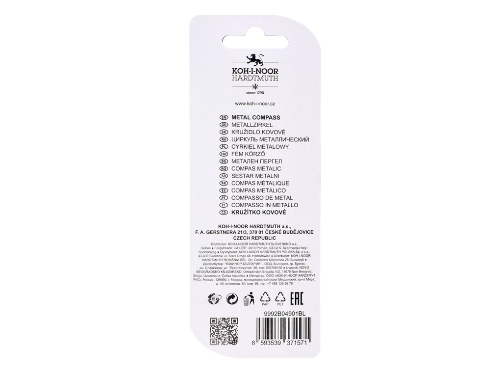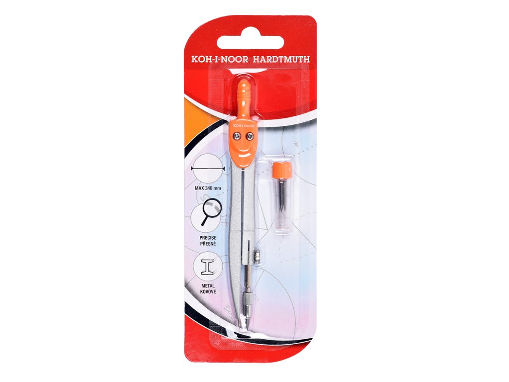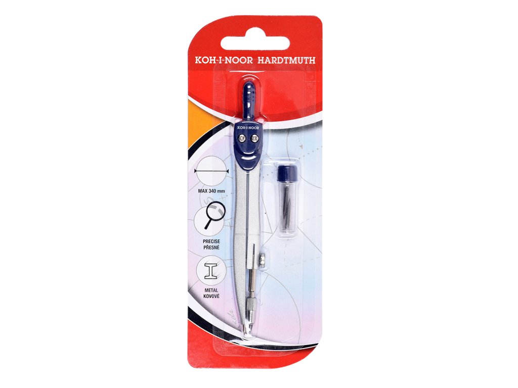 Souprava obsahuje školní kovové kružítko a dva kusy náhradních tuh v plastovém pouzdru. Kovové kružítko je určeno pro kreslení kružnic až do průměru 340 mm. Průměr čepu pro uchycení nástavce s tuhou (tužce) je 3,5 mm, průměr tuhy je 2 mm. Kružítka jsou vyrobena ze slitiny zinku s povrchovou úpravou ve stříbrné barvě (imitace Ni), horní plastový díl s držátkem je vyráběn v černé, tmavě modré a oranžové barvě. Blistr s Euro závěsem obsahuje kružítko a dvě náhradní tuhy v plastovém pouzdru.Doplňkové parametry