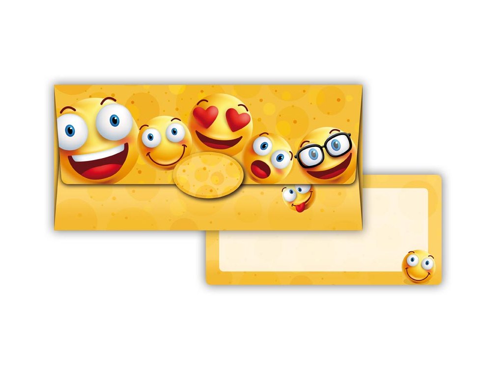 Dárková obálka na peníze s celoročním motivem smajlíků. Udělejte oslavenci radost a věnujte mu obálku s penězi nebo dárkovým poukazem. Uvnitř je kartička bez textu, na kterou můžete napsat věnování.BARVA: žlutá