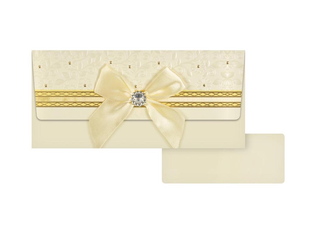 Obálka na peníze svatební mašle se zlatými doplňky 66-015