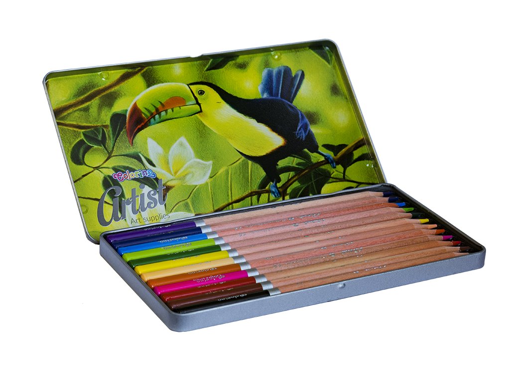 Pastelky dřevěné Artist kulaté kovový box 12 barev