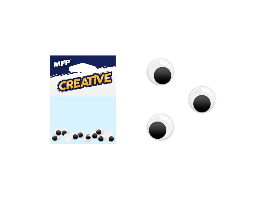 Pohyblivé nalepovací oči o průměru 0,7 cm - oči mají pohyblivou přední část - slouží k výtvarným účelům (dotvoření postav lidí, zvířat)BALENÍ OBSAHUJE: