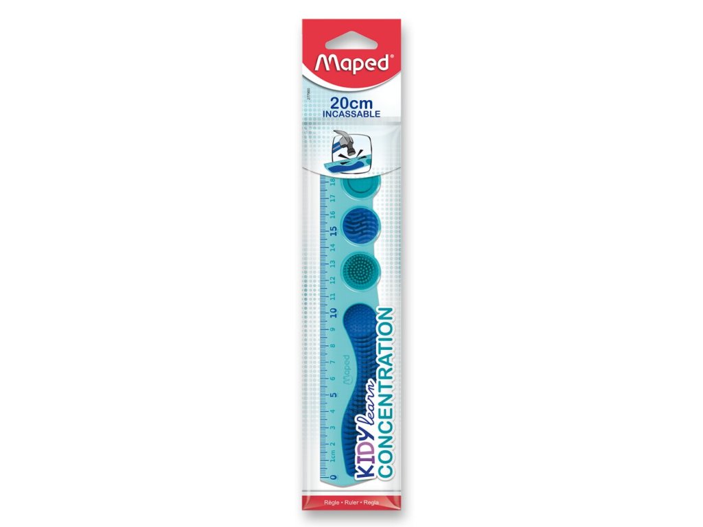 Pravítko Maped Kidy Learn pro začátečníky s protiskluzovou úpravou pro lepší držení. Hmatové oblasti pro zlepšení koncentrace. Délka 20 cm.Řada školních potřeb, která pomáhá dětem lépe se soustředit.