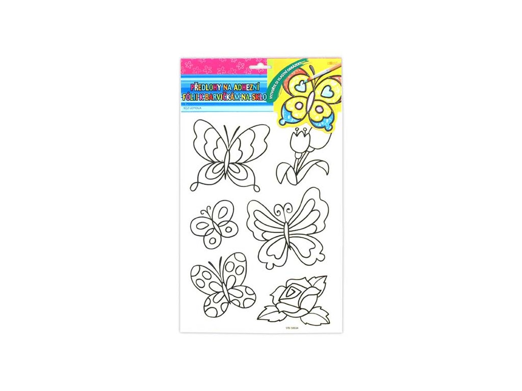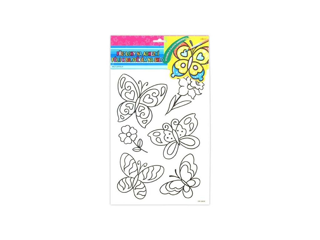 Předloha k barvičkám na sklo na adhezní fólii - Udělejte si pohodové odpoledne s dětmi, překreslete si obrázek pomocí těchto šablon, který si pak můžete umístit na Vaše okno.Provedení: motýlci