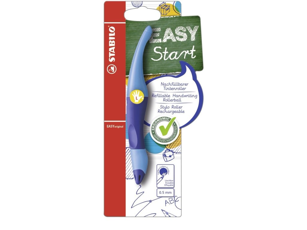Revoluční ergonomicky tvarovaný roller pro leváky. Úchopová zóna z neklouzavého materiálu. Uvolněné držení pera pomáhá proti předčasné únavě svalstva ruky a bolestem v ruce při psaní. Zmizíkovatelný modrý inkoust s náplní 0,5 mm je vhodný pro školáky, kteří se učí psát.Určeno pro školáky od 6 let.