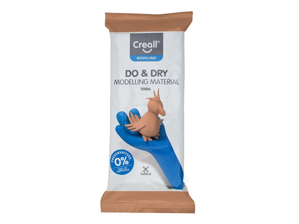 Modelovací hmota pro náhradu přírodních materiálů bez nutnosti vypalování v peci. Výrobek vytvrdne samovolně na vzduchu do cca 24 hod. Poté jej lze dále dekorovat. Při práci s hmotou lze přidáním malého množství vody předejít vysychání. Vytvořený předmět není určen do exteriéru nebo k přímému kontaktu s vodou.jemná lehce zpracovatelná modelovací hmota v barvě přírodní hlíny