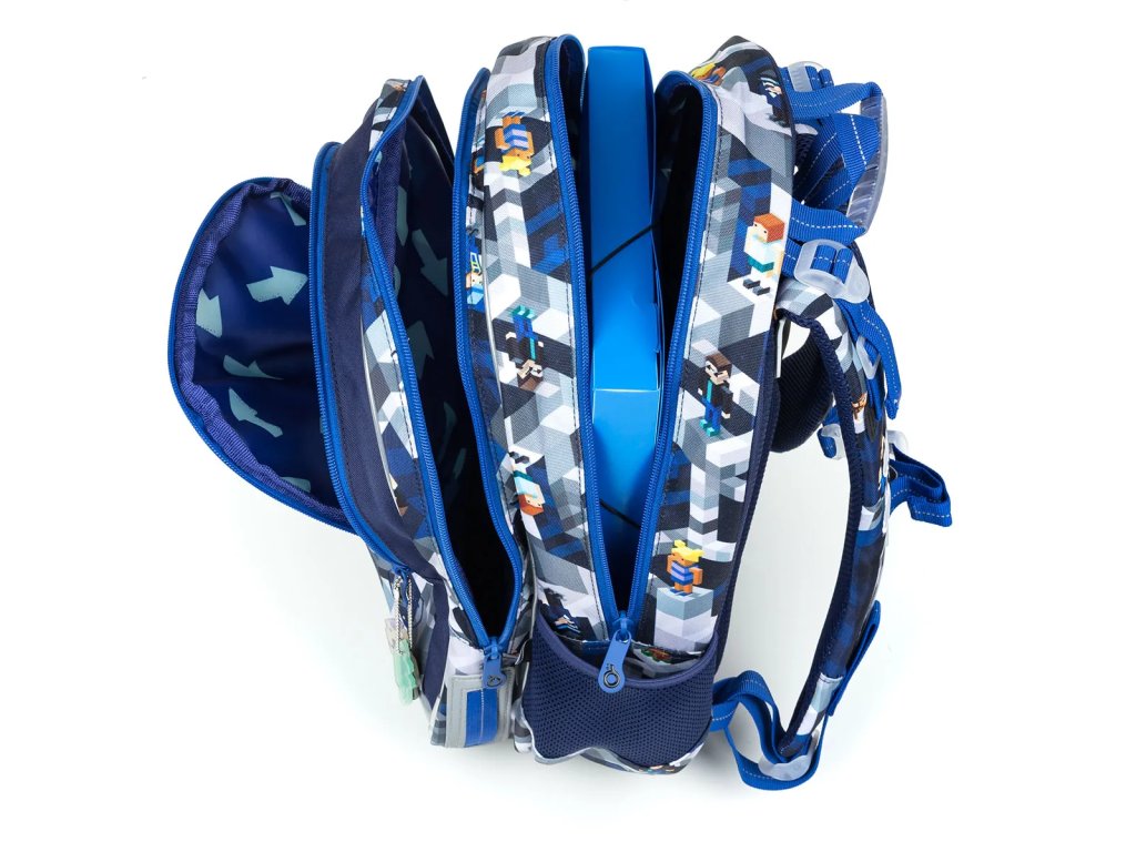 Model ELLY neváží ani kilogram, proto je ideální pro milovníky Minecraft a počítačových her od první až čtvrté třídy ZŠ s výškou od 115 cm.Batoh má dvě objemné hlavní komory. Zadní komora je objemnější a spolehlivě pojme všechno učení. Přední komora je o něco užší a skrývá malou síťovou kapsu na zip a jmenovku.