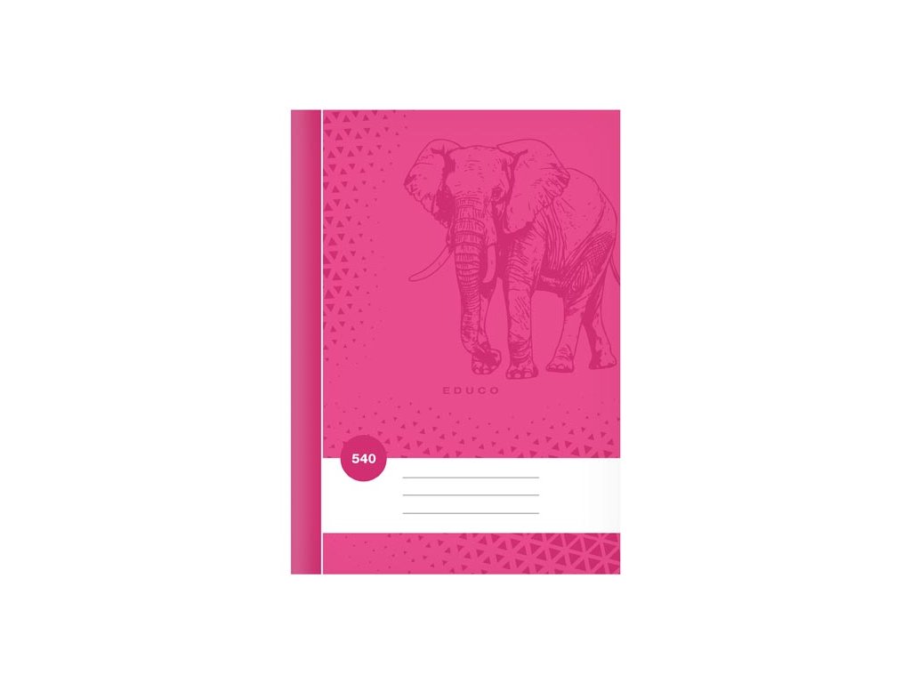 Školní sešit čistý bez linek ve formátu A5, v sytě růžové barvě, s motivem slona, v deskách z křídového papíru.Typ: 540