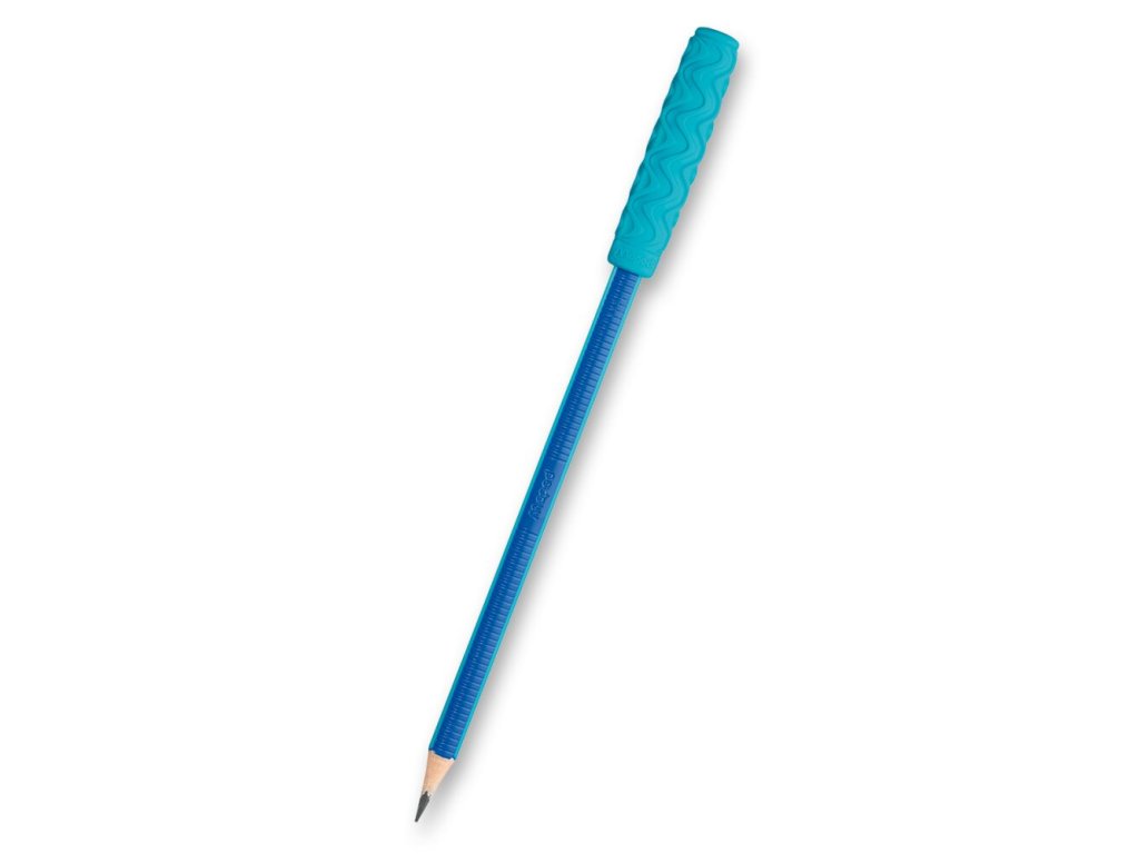 ořezávátko na jednu tužku s odpadní nádobkou a s otočnými měkkými kroužky, které poskytují smyslovou stimulaci svým rotačním pohybem