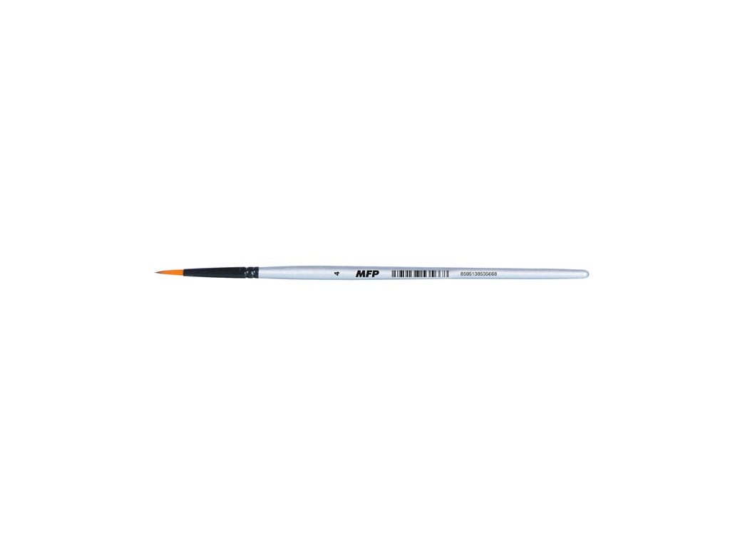 Štětec kulatý s jemným syntetickým vlasem tvarovaným do špičky a dřevěnou rukojetí. Díky syntetickým vláknům usnadňuje roztírání barev a dobře drží tvar. Vlákno je elastické a vyniká vysokými absorpčními schopnostmi. Je méně náchylný k poškození barvami a ředidly než štětec přírodní. Je také výrazně odolnjěší proti poškození či lámaní. Snadno se udržuje v čistotě, a proto vykazuje delší životnost. Hodí se jak pro školní využití, tak i pro různé malířské techniky a povrchy. Ideální pro malování detailů, tenkých linek nebo vybarvování. Štětiny jsou chráněny plastovou krytkou.Velikost: 4