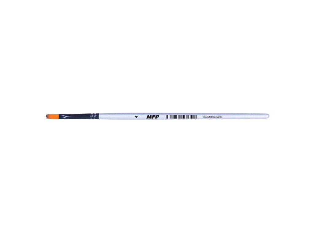 Štětec plochý s jemným syntetickým vlasem a dřevěnou rukojetí. Díky syntetickým vláknům usnadňuje roztírání barev. Vlákno je elastické a vyniká vysokými absorpčními schopnostmi. Je méně náchylný k poškození barvami a ředidly než štětec přírodní. Je také výrazně odolnjěší proti poškození či lámaní. Snadno se udržuje v čistotě, a proto vykazuje delší životnost. Hodí se jak pro školní využití, tak i pro různé malířské techniky a povrchy. Ideální pro malování větších ploch nebo stínování. Lze s ním malovat na plocho nebo hranou tenké linky. Určený pro hutnější barvy, kde je důležitá pevnost a odolnost.Velikost: 4