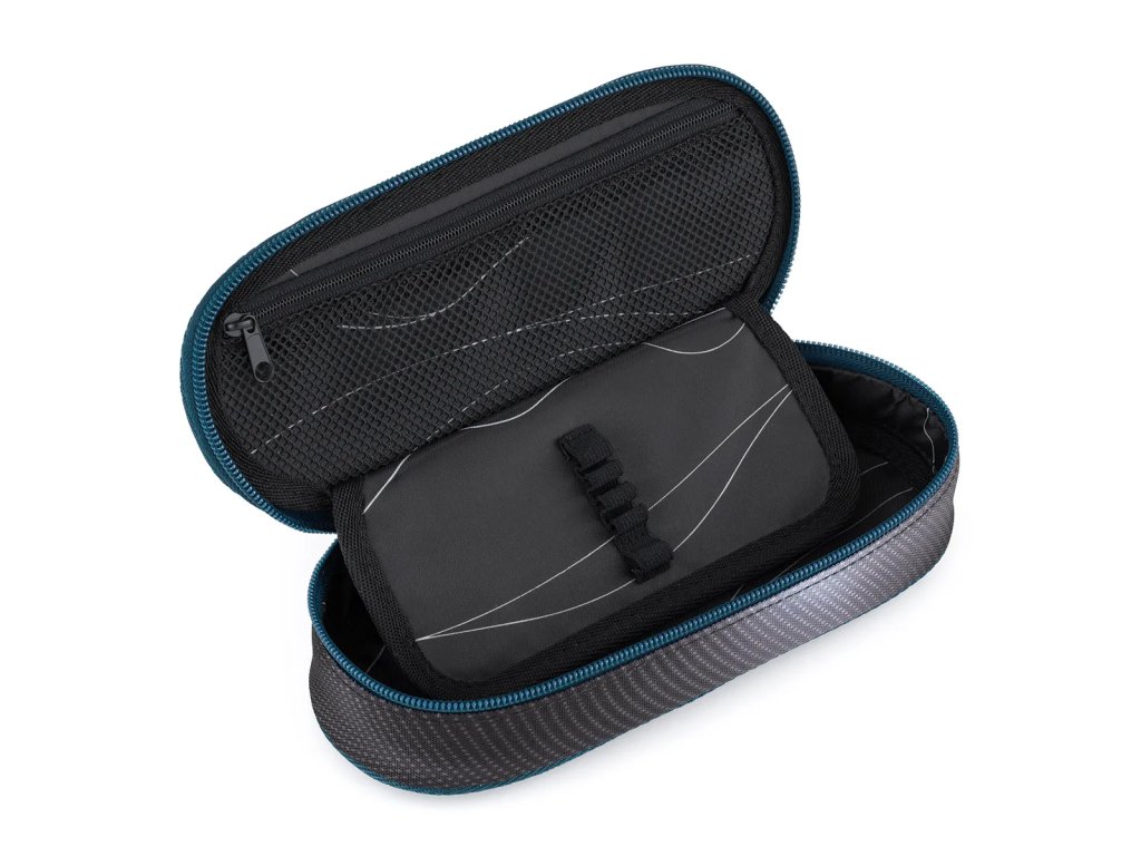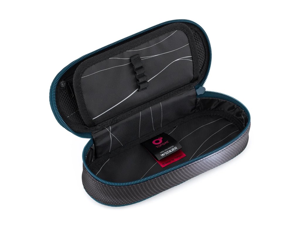 Polstrované pouzdro pro studenty i školáky.Oválný penál pro všechny starší školáky a studenty. Uvnitř pouzdra je síťová kapsička na zip a klopa s devíti gumičkami na propisky. Volný prostor pod klopou slouží pro další psací potřeby – pastelky, fixy, ale i pravítko nebo kružítko.