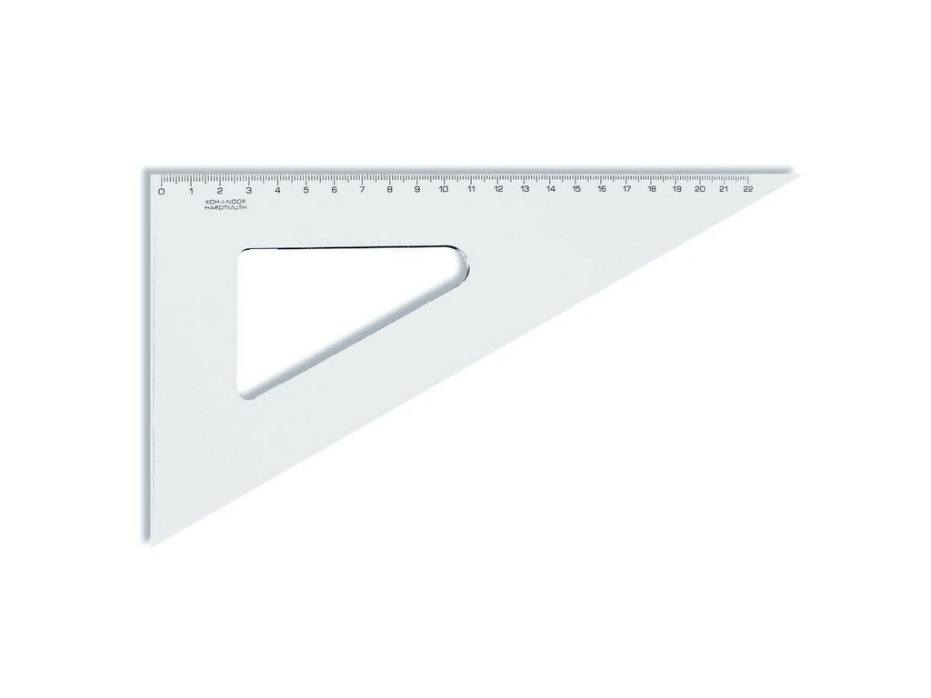 Trojúhelník 60/250 vyrobený z čirého průhledného polystyrenu. Stupnice je tištěna technologií přesného sítotisku. Tisk je odolný proti opotřebení při běžném používání. Přesnost stupnice 0,2% délky. Trojúhelník je určený k rýsování a technickému kreslení ve škole i v kanceláři. Zabalen je do polyetylenového sáčku s eurozávěsem.Doplňkové parametry