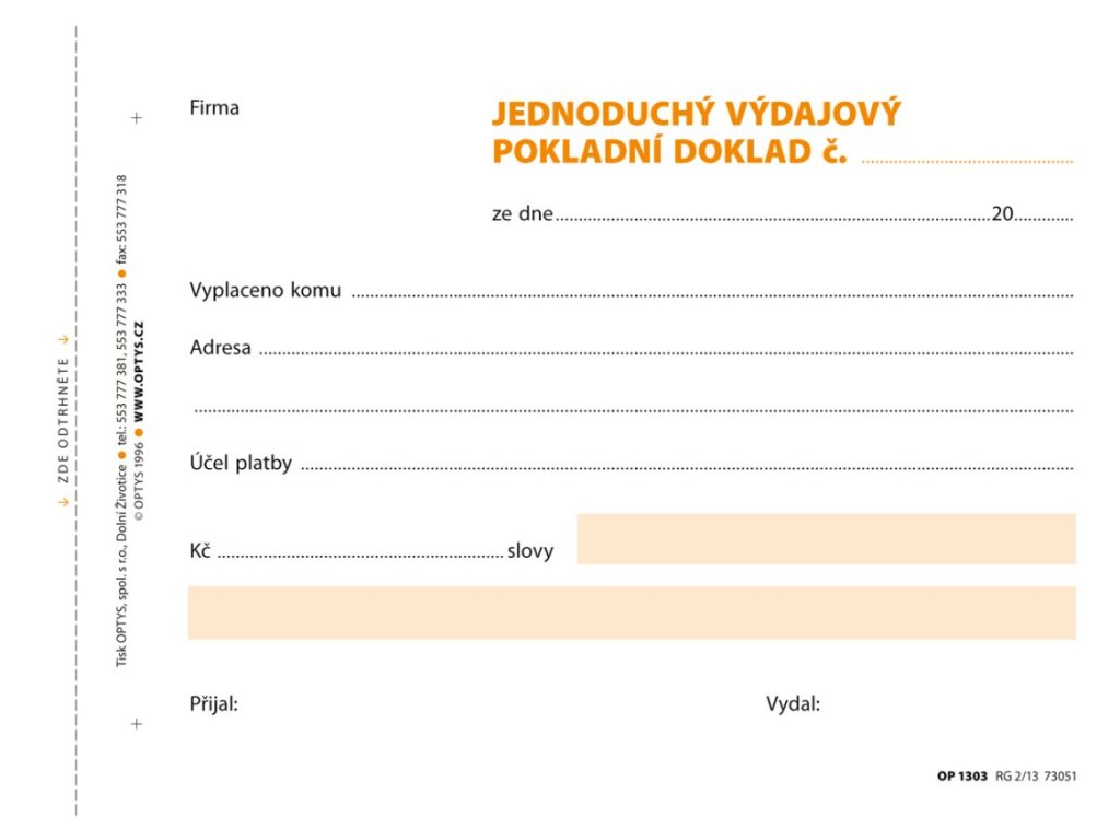 Výdajový doklad A6 jednoduchý samopropisovací 100 listů