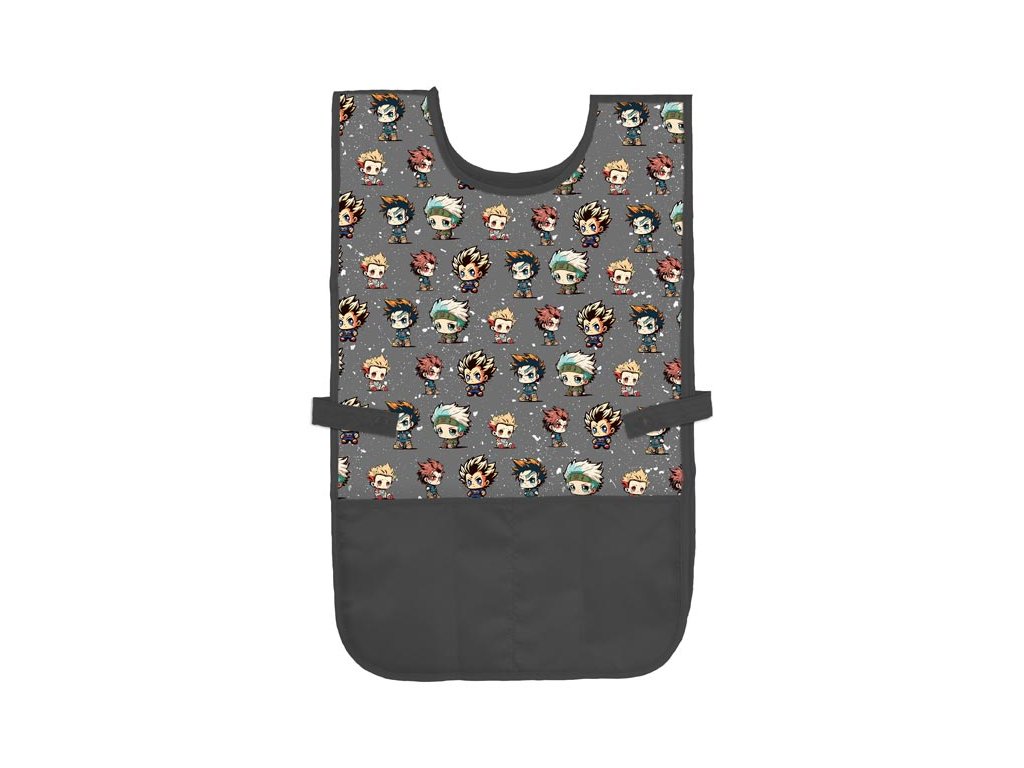 Zástěra s motivemn závodního auta. Po stranách má dvě pozice zapínání na druky, které umožňují přizpůsobení velikosti zástěry podle potřeby. Oblékání přes hlavu je jednoduché a rychlé, což je praktické pro malé děti, které mohou zástěru snadno obléknout a svléknout samy. V dolní části zástěry jsou praktické kapsy. Perfektní pro hodiny výtvarné výchovy, domácí tvoření i pomoc v kuchyni. Zástěra je snadno omyvatelná.Motiv: závodní auto
