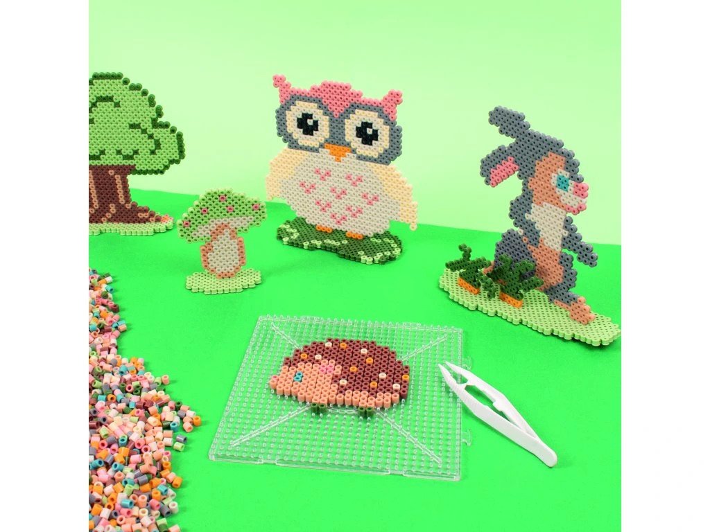 K sestavení obrázků z korálků používejte podložky pro korálky, na které buď podle šablon nebo podle vlastní fantazie vytváříte nejrůznější motivy. Poté na vyskládaný obrázek položte běžný pečící papír a zažehlete žehličkou ohřátou na nejvyšší stupeň. Nechte korálky vychladnout, obrázek sejměte z podložky a máte hotovo! Vhodné pro děti na podporu jemné motoriky. Korálky nemusíte jen zažehlovat, můžete je používat jako normální korálky a navlékat je na provázek.