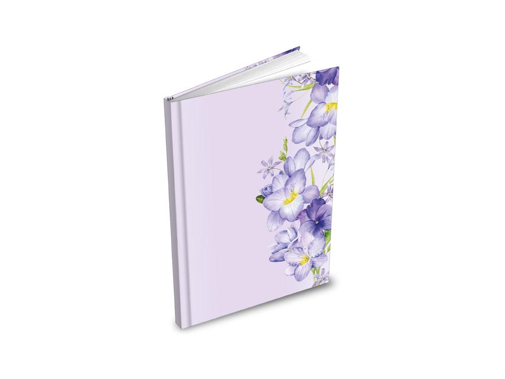 Záznamní kniha A4 100 listů linka fialové květy