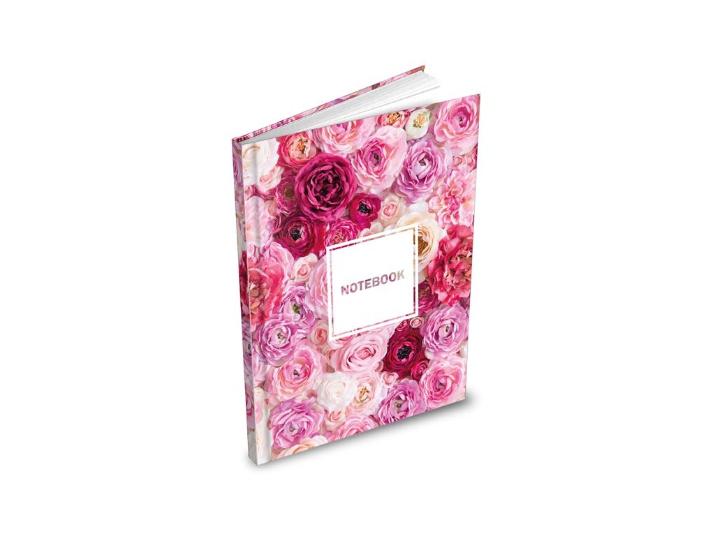 Motiv: květy růží, nápis „Notebook“